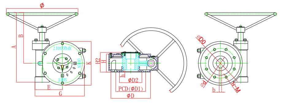 該系列蝸輪箱適用環境廣、功能全面、形式多樣(有手輪式、手輪帶鎖式等),產品共有11種型號。